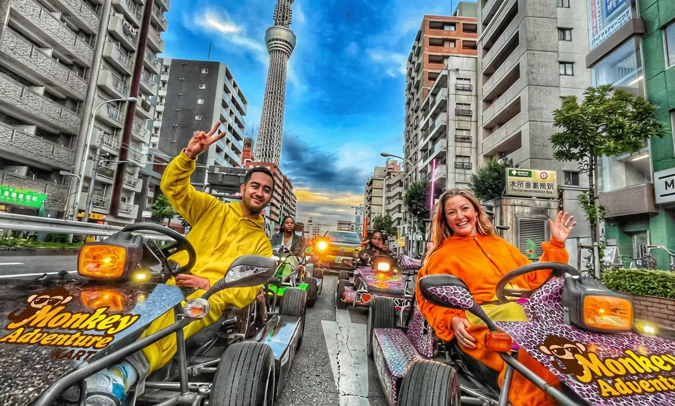 At Monkey Adventure Kart, our mission is to provide the most exhilarating and hassle-free way to experience Tokyo. We aim to let you feel the thrill of the open road, discover the hidden beauty of the city, and create memories that will last a lifetime. By combining safety, excitement, and a touch of Tokyo magic, we strive to offer an unparalleled Go-karting tokyo Adventure that you’ll cherish forever.