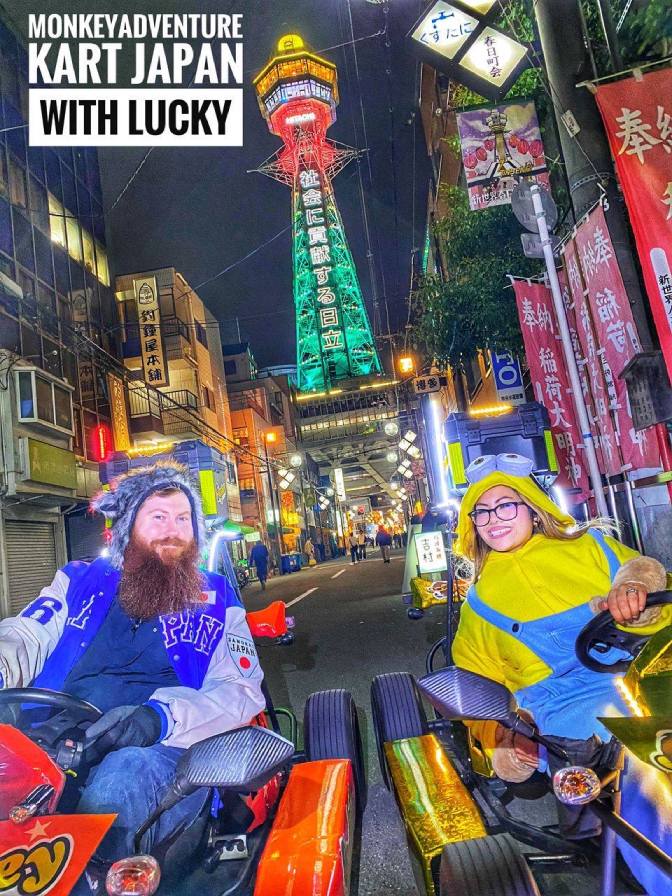 Get ready for an Osaka adventure that blends classic sights with modern thrills, all experienced from the exhilarating seat of your very own Monkey Adventure Kart! Buckle up and prepare to zoom through the heart of Osaka, from Den Den Town’s anime wonderland to the bright lights of Dotonbori and the iconic Tsutenkaku Tower. It’s a ride that promises unforgettable memories and pure fun – your Osaka Monkey Adventure Kart adventure awaits!
